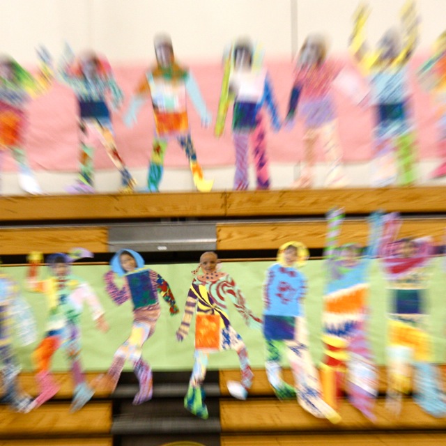 Toisluokkalaisten suuri yhteinen projekti on saavuttanut huippunsa. Muutaman kuukauden ajan ovat pienet harjoitelleet jumppatunneilla yksinkertaisia mutta hauskoja jonglööraus-, tasapainoilu- ja akrobatiatemppuja. Niinpä me perheet saimme perjantai-illan iloksi seurata 104:n klovnin sirkusesitystä. Tervetuloa mukaan! (Kuopuksen tunnistanee kuvista mainiosti suomalaisen asunsa ja hiustenvärin ansiosta.)